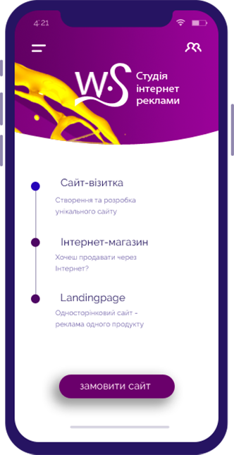 Сайт-візитка (корпоративний) – ви отримаєте візитну картку своєї компанії в мережі інтернет. Користувачі зможуть отримати інформацію про вашу діяльність і більше дізнатися про послуги і товари. Так само вас зможуть легко знайти в пошукових системах.
